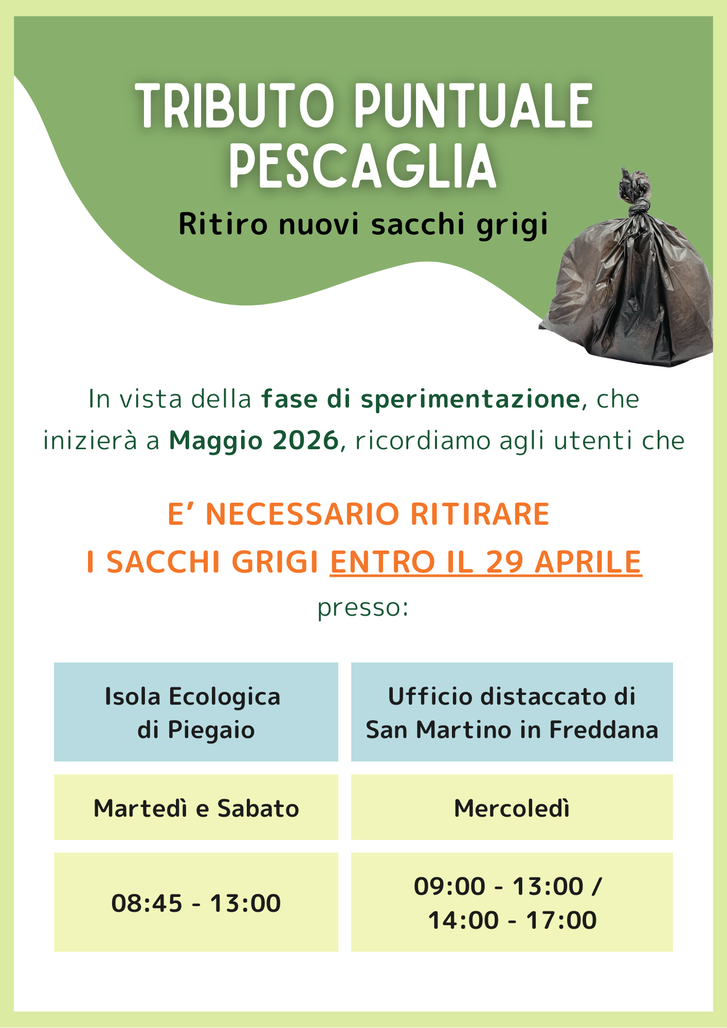 A Pescaglia più ricicli, meno paghi. È questo il principio alla base del Tributo Puntuale, un metodo di calcolo della tariffa basato sulla misurazione del rifiuto indifferenziato, per garantire una maggiore equità e premiare i comportamenti degli utenti più attenti nella raccolta differenziata. Il nuovo sistema partirà in via sperimentale a maggio 2026 e sarà […]