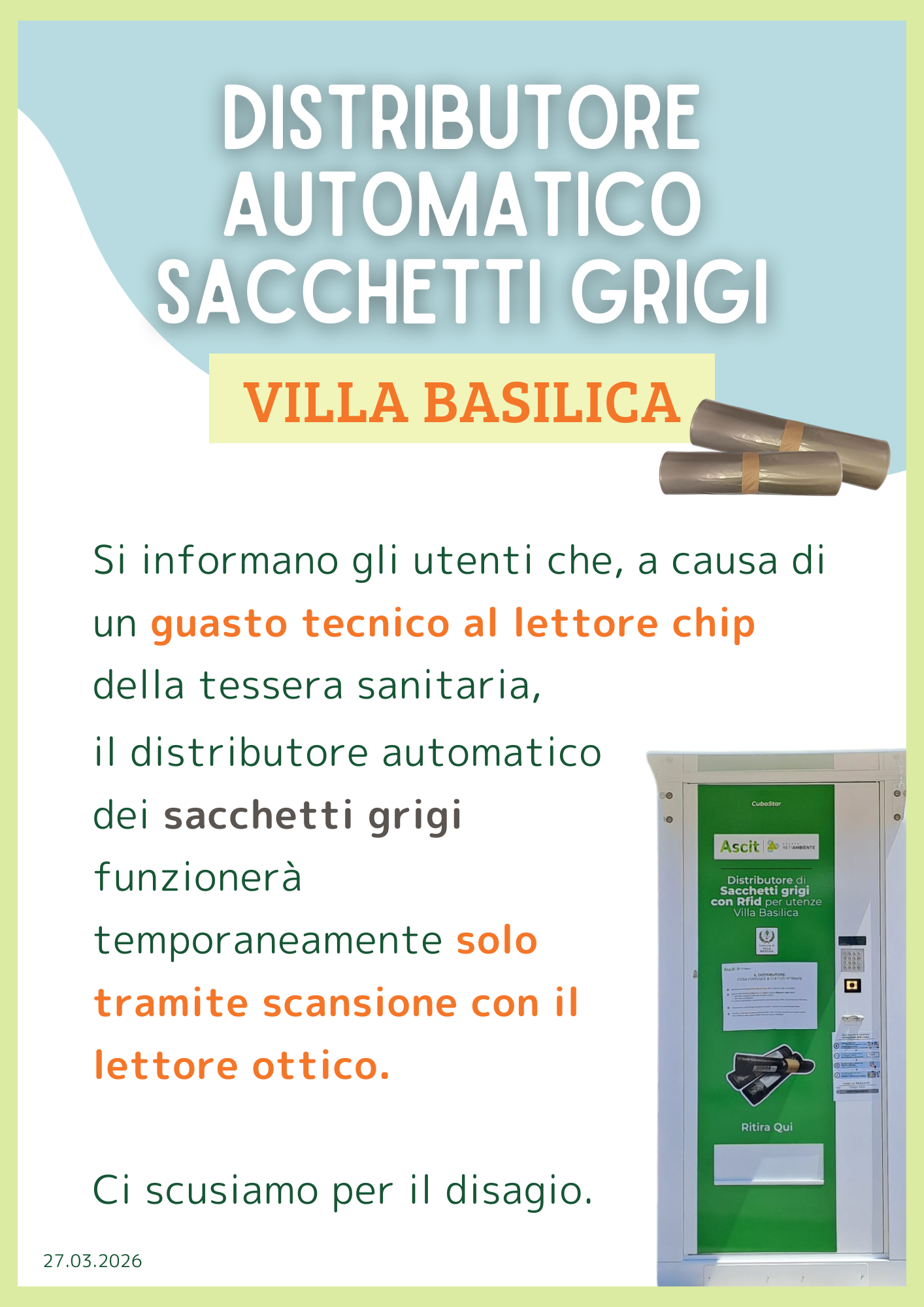Puoi conferire le tue pile e accumulatori portatili all’interno di appositi contenitori tubulari distribuiti da ASCIT SpA presso i centri commerciali e negozi presenti sul territorio comunale interessati alla vendita di pile, presso le scuole materne, elementari e medie, presso la sede e gli uffici comunali e tutti gli uffici e Centri di Raccolta di ASCIT SpA.